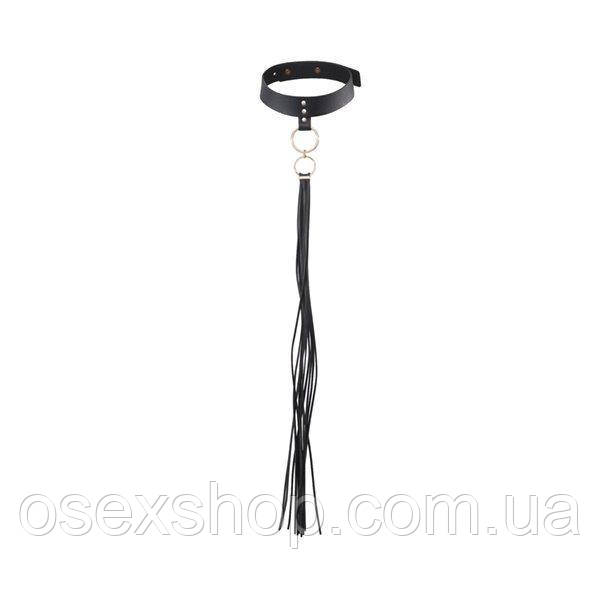 Жорсткість і жіночність, сила та слухняність зійшлися в цьому шикарному чокері воєдино. Чокер стилізований під шкіру, прикрашений золотистим металом і в комплекті з декоративним «кнутом» або краваткою — все разом має дорогий та якісний вигляд. Цей сексуальний аксесуар розбудить фантазію й відкриє ворота у світ еротичних ігор. Пограйте з прикрасою, вручіть «кнут» своєму партнеру як повідець — і ви дізнаєтеся один одного по-новому! Чокер підійде на різний обсяг шиї завдяки можливостям регулювання.